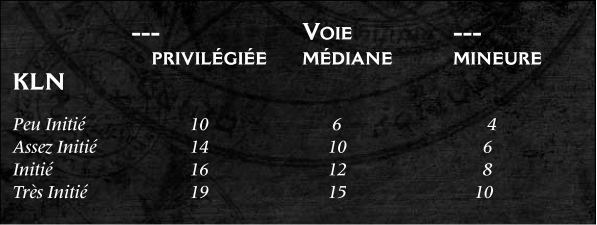 | Seuil | 40% (Yesod, 1er cercle) |
